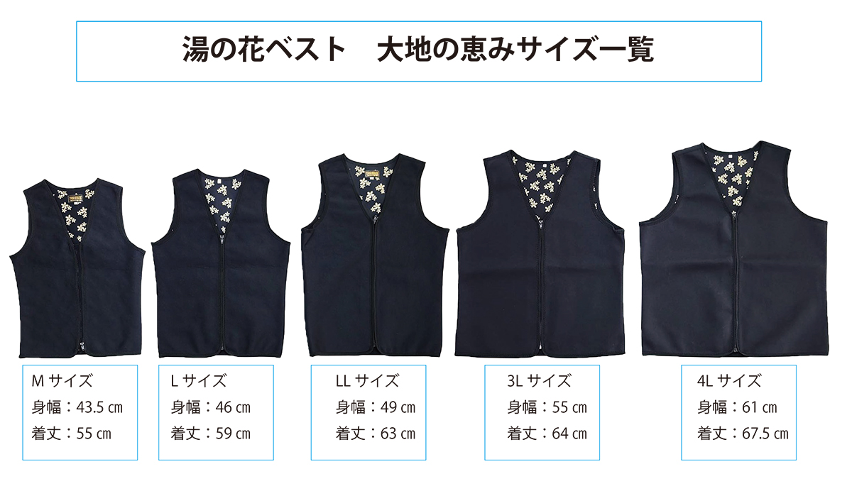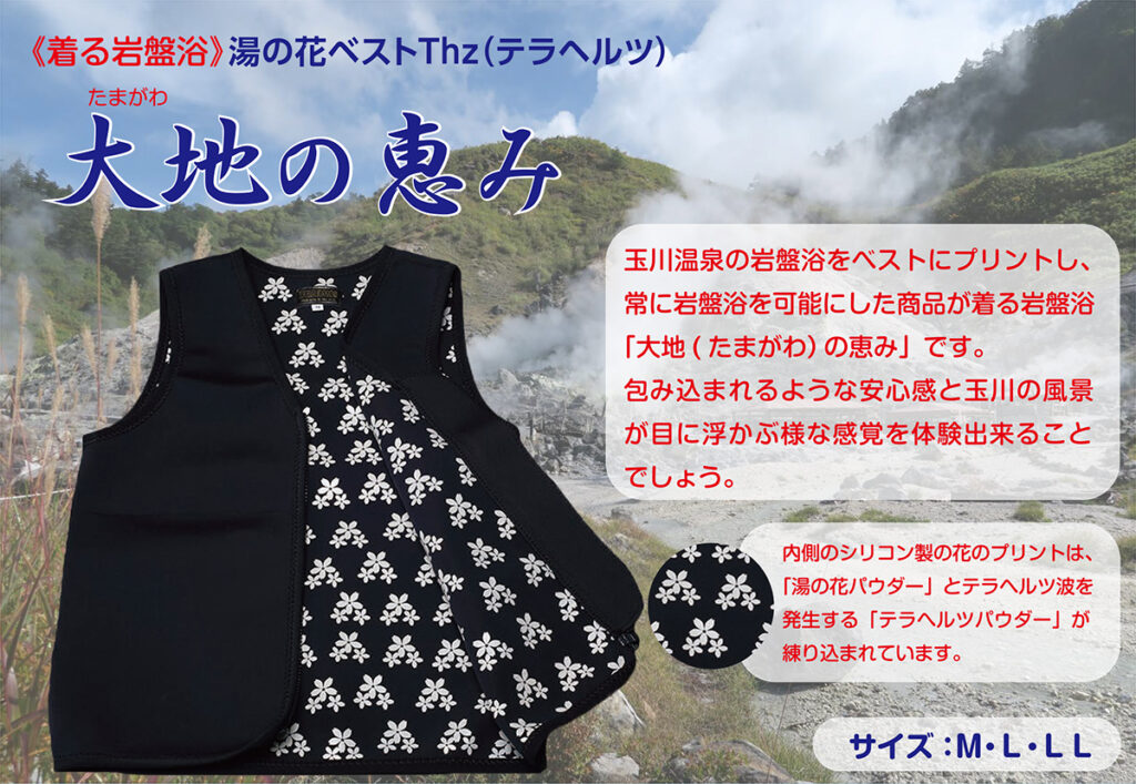 着る岩盤浴「たまがわ大地の恵み」湯の花ベスト 商品番号:goods_10 湯の花ベストThz(テラヘルツ) M ¥88,000(税込) 数量 Lサイズ ¥88,000(税込) 数量 LLサイズ ¥88,000(税込) 数量 3Lサイズ ¥88,000(税込) 数量 4Lサイズ ¥88,000(税込) 数量 商品説明